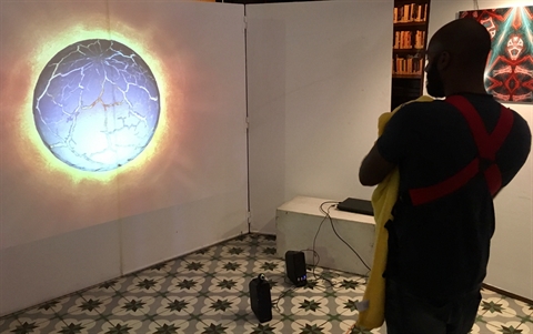 Installation interactive interrogeant l'avenir de la planete lié à l'activité humaine